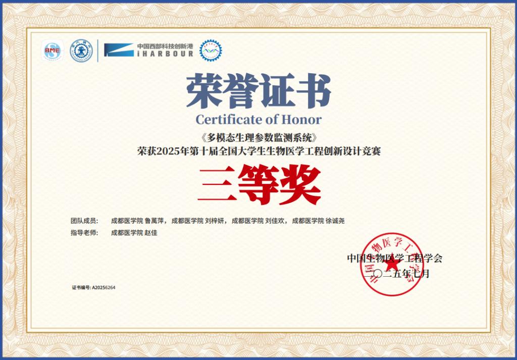 上一条:以赛赋能强技能,成医学子在全国“寻康杯”大赛中斩获二等奖 下一条:成医学子获四川省大学生生物医学工程创新设计大赛二等奖